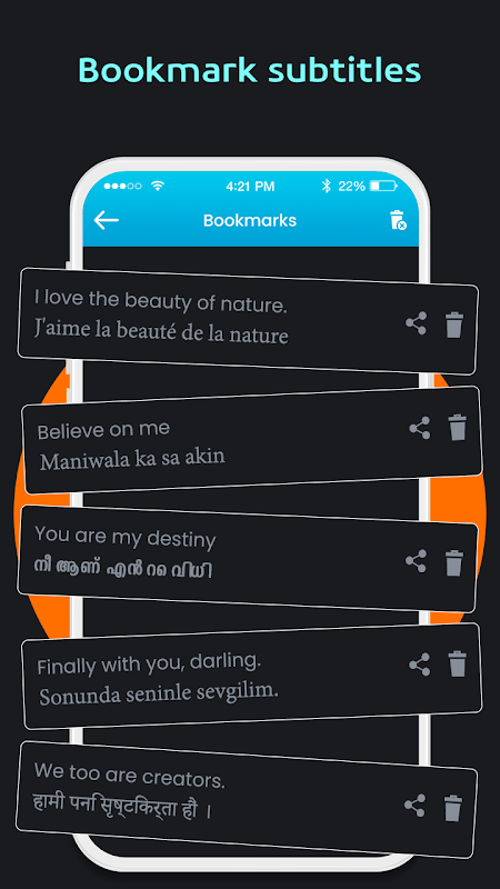 নতুন ভাষা শেখার সময় আপনি পাঠ্যের আকার বাড়াতে বা কমাতে পারেন, শুধুমাত্র অনুবাদিত ভাষা বা ইংরেজি ভাষা বা উভয় ইংরেজি এবং পছন্দসই অনুবাদিত সাবটাইটেল ভাষা সেট করতে পারেন।