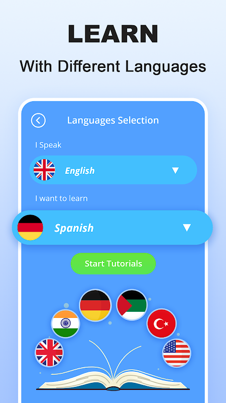 স্প্যানিশ, ফ্রেঞ্চ, তুর্কি, আরবি বা হিন্দি শিখতে এখন মজাদার। এই সমস্ত সর্বাধিক কথ্য ভাষা শিখুন একটি আশ্চর্যজনক ভাষা শেখার অ্যাপ্লিকেশন যা আপনাকে তালিকা থেকে সহজে এবং কার্যকরভাবে একটি নতুন ভাষা শিখতে দেয়। ভাষা শিখুন বিনামূল্যে অ্যাপ্লিকেশন আপনার জন্য এই সমস্ত বিখ্যাত ভাষা শেখা সহজ করে তুলবে। আপনার শুধুমাত্র নিজের স্থানীয় ভাষা জানার বিষয়ে চিন্তা করার দরকার নেই, ভাষা শিক্ষার অ্যাপ্লিকেশনটি আপনার জীবনকে আরও সহজ করার জন্য এখানে রয়েছে। আপনার দক্ষতা উন্নত করতে বিভিন্ন পাঠের মতো অনুশীলন, কথোপকথন এবং ফ্ল্যাশকার্ড ক্রিয়াকলাপের মতো বিভিন্ন ক্রিয়াকলাপ অন্বেষণ করে ভাষা শিখুন। শব্দভাণ্ডার নির্মাতা অ্যাপ্লিকেশনটি নতুনদের জন্য বা যারা একটি নতুন ভাষা শিখতে চায় তাদের জন্য। ভাষা শিক্ষার অ্যাপটি দুর্দান্ত কাজ করে কারণ আপনার নিজের পকেটে আপনার নিজের শিক্ষক আছে বলে মনে হবে।