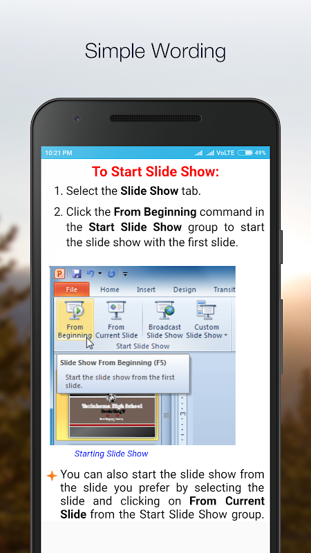 This app discusses all the basic as well as advanced topics of PowerPoint!