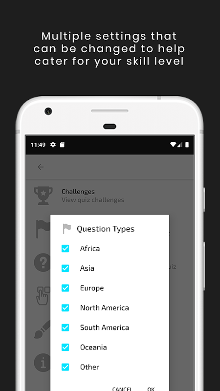হালকা এবং অন্ধকার থিমগুলির মধ্যে চয়ন করুন যা আপনার বর্তমান মেজাজকে সর্বোত্তমভাবে প্রতিফলিত করে বা কোন ইউরোপের পতাকা ক্যুইজ, আফ্রিকান পতাকা কুইজ ইত্যাদি তৈরি করে কোন জাতীয় পতাকাগুলি কুইজে অন্তর্ভুক্ত রয়েছে তা পরিবর্তন করুন - আমাদের বিশ্বটি আপনার ঝিনুক!