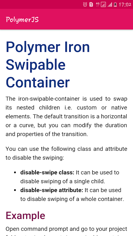 Polymer JS tuorials provide you good UI for read. Learn PolymerJS - Learn Web Development - learn JS provide you the examples for every topics. Polymer JS tutorial provide you the facility of copy the code, you can easily use it in your project.Polymer JS tutorial has the pictorial explanation of all the theory.Polymer JS tutorial contain all the topics of latest technology.