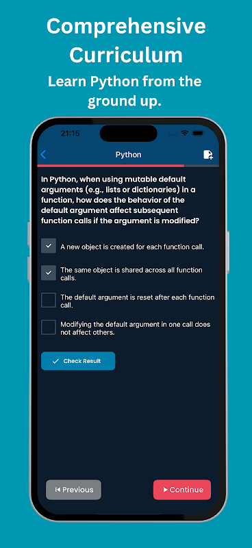 ব্যাপক পাঠ্যক্রম: গ্রাউন্ড আপ থেকে পাইথন শিখুন। মৌলিক সিনট্যাক্স থেকে শুরু করে উন্নত বিষয়, আমাদের কাঠামোগত পাঠগুলি আপনাকে পাইথন প্রো হওয়ার জন্য প্রয়োজনীয় সমস্ত কিছুকে কভার করে।