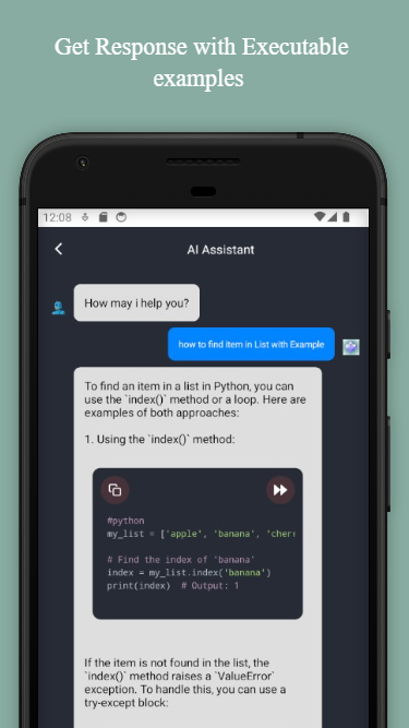 2. চ্যাট জিপিটি সহ এআই সহকারী: চ্যাট জিপিটি দ্বারা চালিত আমাদের এআই সহকারীর সাথে শিক্ষা আরও আকর্ষণীয় হয়ে ওঠে। আপনার কোডিং দক্ষতা উন্নত করার জন্য ব্যক্তিগতকৃত নির্দেশিকা, আপনার প্রোগ্রামিং প্রশ্নের তাত্ক্ষণিক উত্তর এবং সহায়ক টিপস পান।