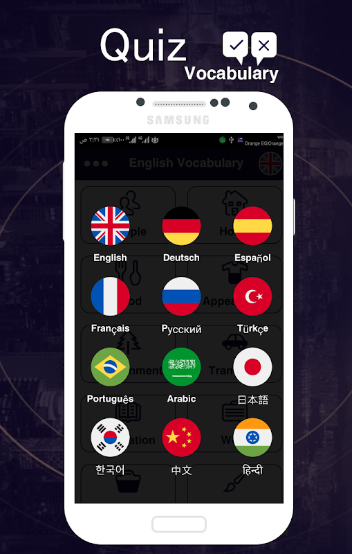 Learn the vocabulary of English language and an Quiz between 6 different Quiz