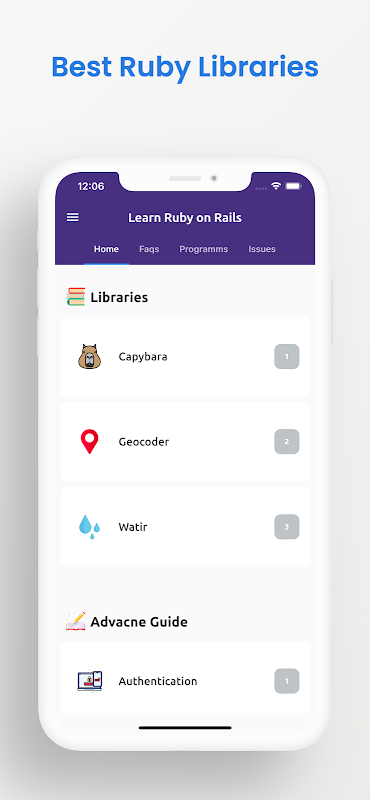 এই অ্যাপ্লিকেশনটি রুবি থেকে শুরু করে রেলগুলি শেখানোর একটি খুব কাঠামোগত পদ্ধতি গ্রহণ করেছে - রেলের পিছনে প্রোগ্রামিং ভাষা। "হ্যালো ওয়ার্ল্ড" থেকে অবজেক্ট ওরিয়েন্টেড প্রোগ্রামিং পর্যন্ত সমস্ত কিছুই আচ্ছাদিত।