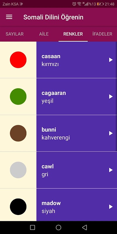 With a few minutes every day you learn new words, the application is free and available in Arabic, English and Turkish according to the language of your phone without the Internet provides pronunciation, pictures and words.