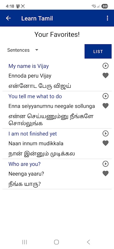 এই অ্যাপটি ধাপে ধাপে এবং সহজে ইংরেজির মাধ্যমে কথ্য তামিল শেখার জন্য আপনার জন্য নিখুঁত গাইড!