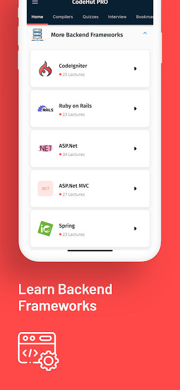 আপনি যদি মোবাইল অ্যাপ ডেভেলপমেন্টে আগ্রহী হন, আমাদের অ্যাপটি রিঅ্যাক্ট নেটিভ, আইওনিক এবং নেটিভস্ক্রিপ্টের মতো ফ্রেমওয়ার্কও কভার করে। আমাদের অ্যাপের মাধ্যমে, আপনি একজন দক্ষ প্রোগ্রামার এবং ডেভেলপার হওয়ার জন্য আপনার যা যা জানা দরকার তা শিখতে পারবেন।