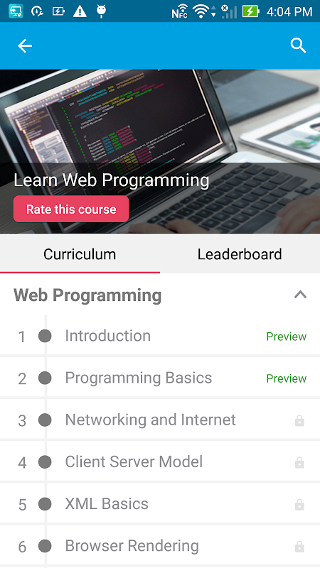 You have limited access to the content provided. For full access to the content, please login and purchase this application. This app provides a quick summary of essential concepts in Web Programming by following snack sized chapters: