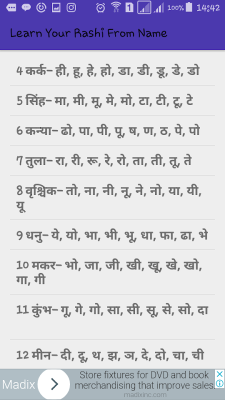 Learn Your Rashi From Name - नाम द्वारा राशि Jaane 1.0
