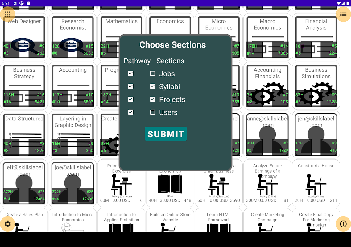 This is an Android Mobile version of the dashboard application to manage and change learning pathways and dashboards. The current version provides the navigation and filtering, creating new dashboards, drag-and -drop features for changing dashboards sort orders and assigning elements to pathways.