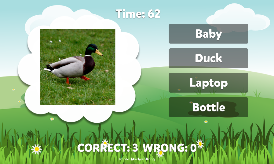 Learning Words for Toddlers has more than 400 beautiful colorful pictures! This game has two difficulty settings. In level one you choose the correct photo by the word, and in level two you choose the correct word by the photo.