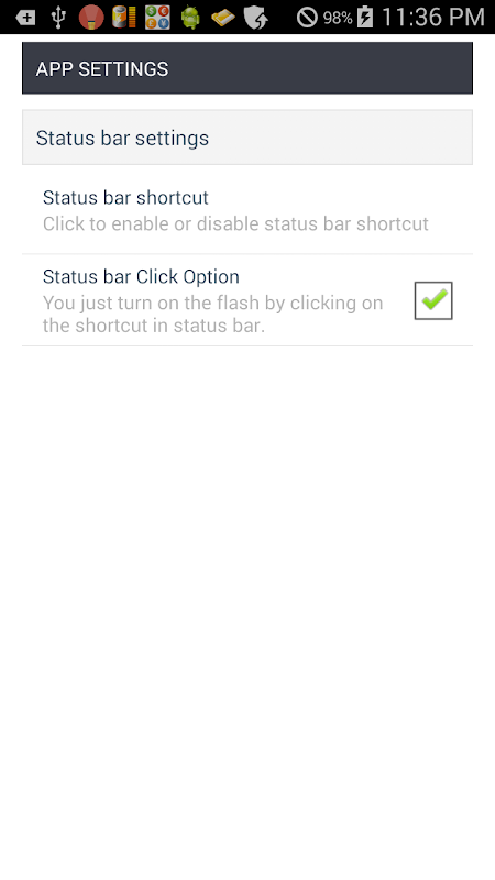 On the status bar has been added LED flash immediately.