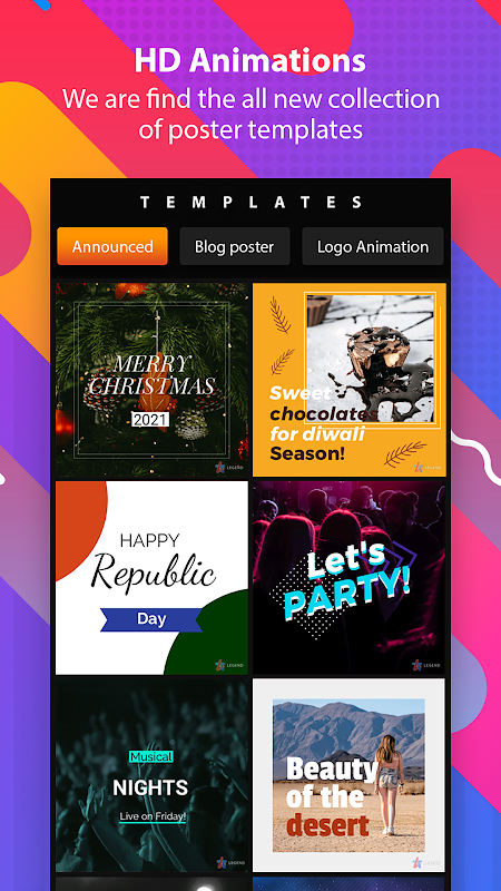 অ্যানিমেটেড ভিডিও এবং জিআইএফ মেকার অ্যাপটি ক্লাসিক টেক্সট অ্যানিমেশনের সাথে নির্বাচিত ভিডিও ওভারলে করার জন্য একটি অ্যানিমেটর অ্যাপ্লিকেশন। ব্যাকগ্রাউন্ডে সেট করার জন্য বিভিন্ন ধরণের ফন্ট সহ সাধারণ পাঠ্য অ্যানিমেশন সহ ব্যাকগ্রাউন্ডে পাঠ্য ওভারলে করা সহজ। লিজেন্ড অ্যাপ কম্পিউটার সফ্টওয়্যারগুলি না শিখে মাত্র কয়েক মিনিটের মধ্যে আপনার ইউটিউব চ্যানেল, গেমিং স্ট্রিম বা সোশ্যাল মিডিয়া প্ল্যাটফর্মের জন্য একটি পেশাদার চেহারার ইন্ট্রো ভিডিও, সোশ্যাল মিডিয়া ভিডিও পোস্ট, অ্যানিমেটেড সোশ্যাল মিডিয়া পোস্ট এবং ভিডিও অ্যানিমেশনের ক্লিপ বা পাঠ্য তৈরি করতে সহায়তা করে৷