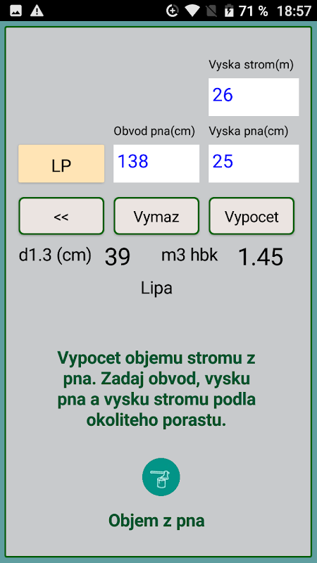 peň - objem vyrúbaného stromu.
