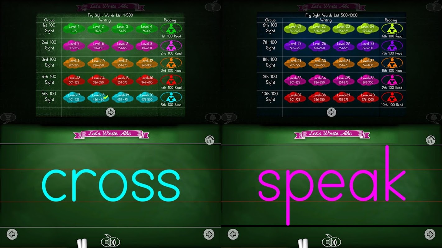 , লেখা পড়া আর বানান "দৃষ্টিশক্তি শব্দ", নাম্বার, কার্সিভ এবং সব চিঠিপত্র.