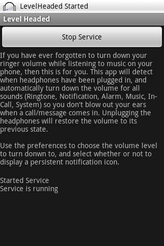 This app detects when headset is plugged in, & adjusts the volume for all sounds. Restores original volume level when headset is unplugged.