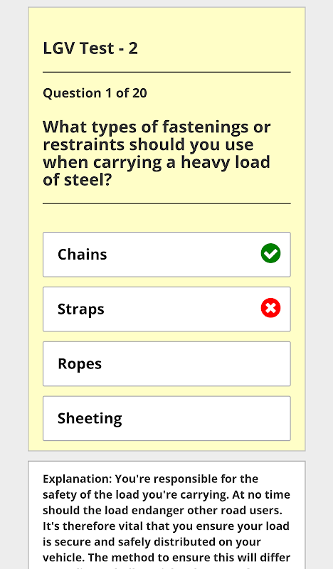 This app has over 900 LGV Theory practice questions and answers.