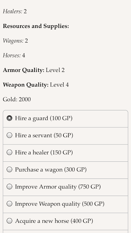 "লাইফ অফ এ ভাড়াটে" ফিলিপ কেম্পটনের একটি 338,000 শব্দের ইন্টারেক্টিভ ফ্যান্টাসি উপন্যাস, যেখানে আপনার পছন্দগুলি গল্পটি নিয়ন্ত্রণ করে। এটি সম্পূর্ণরূপে পাঠ্য-ভিত্তিক graph গ্রাফিক্স বা শব্দ প্রভাব ছাড়াই — এবং আপনার কল্পনাশক্তির বিশাল, অবিরাম শক্তি দ্বারা চালিত।