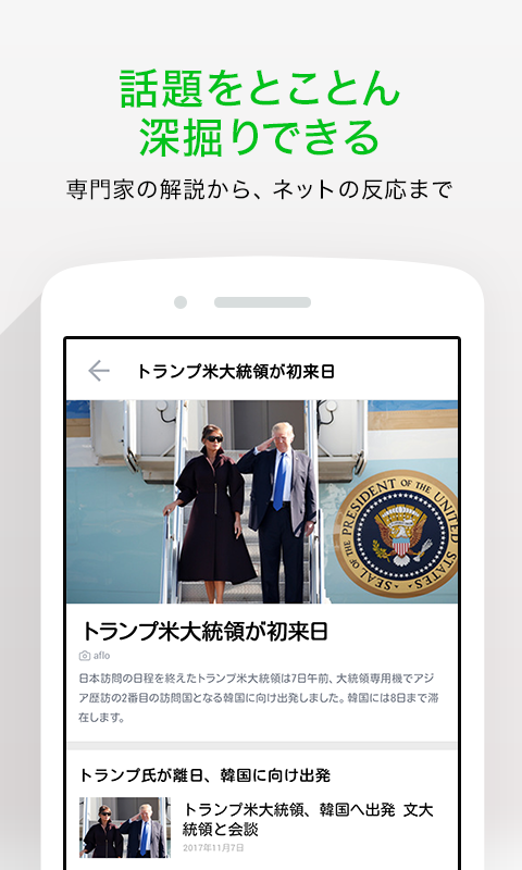 たとえ途中からニュースを読んだとしても、スクロールするだけでその話題の全体像を簡単に把握することができます。
