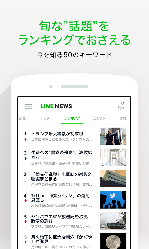 "ランキング"タブ登場!旬な話題をランキングでおさえることができます。