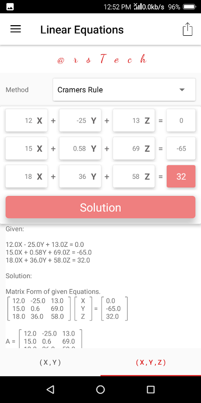এটি 2 বা 3টি ভেরিয়েবল বিশিষ্ট রৈখিক সমীকরণের সম্পূর্ণ সমাধান প্রদান করে।