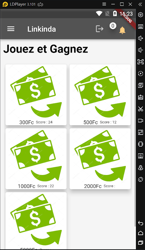 Linkinda আপনাকে সর্বোচ্চ স্কোর পেতে 6 বার পাশা ঘুরিয়ে সারা বিশ্বের ব্যবহারকারীদের চ্যালেঞ্জ করতে দেয়। আমরা DRC-তে পরিচিত একটি গেমের নীতি গ্রহণ করি, যেখানে প্রত্যেকে অর্থ বাজি ধরে, খেলে এবং যে জিতবে, সে অন্যদের কাছ থেকে সমস্ত অর্থ পাবে।