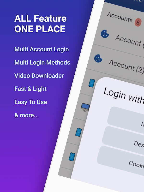 - একক অ্যাপে এক বা একাধিক Facebook অ্যাকাউন্টে নির্বিঘ্নে লগ ইন করুন।