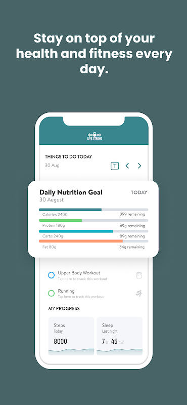 লাইভ স্ট্রং অ্যাপের মাধ্যমে, আপনার ফিটনেস এবং স্বাস্থ্য লক্ষ্যে পৌঁছাতে সাহায্য করার জন্য বিশেষভাবে ডিজাইন করা ওয়ার্কআউট প্রোগ্রামগুলিতে অ্যাক্সেস থাকবে! আপনি আপনার ওয়ার্কআউটগুলি, আপনার পুষ্টি, আপনার জীবনযাত্রার অভ্যাস, পরিমাপ এবং ফলাফলগুলি অনুসরণ করতে এবং ট্র্যাক করতে পারেন—সবই আপনার কোচের সাহায্যে।