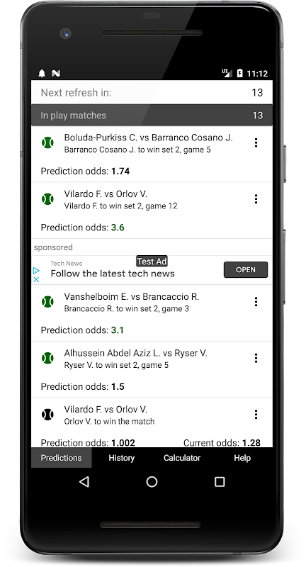Tennis Predict0r gives predictions for live tennis matches using a custom prediction model.