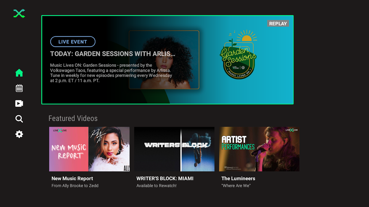 গ্লোবাল কভারেজ এবং প্রতিদিন লাইভ মিউজিকের সাম্প্রতিকতম সংগ্রহের সাথে, আপনি পপ, ইডিএম, হিপ হপ, কান্ট্রি, রক এবং বিশ্বের সর্ববৃহৎ শিল্পীদের থেকে কনসার্ট, সাক্ষাত্কার এবং একচেটিয়া LiveOne ভিডিও সামগ্রী দেখতে পাবেন তার পরেও.