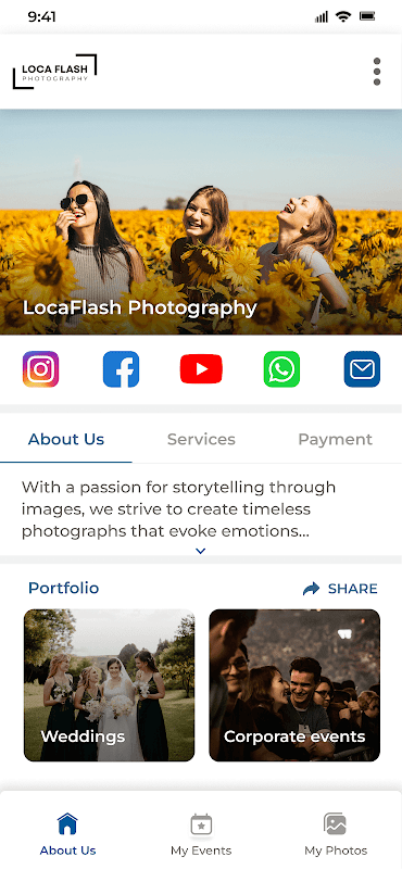 Just click on the link shared with you or scan the QR code to access the event photos.