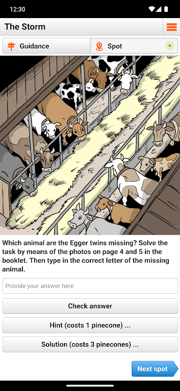 রুট এক্সপ্লোর করুন, শুনুন, দেখুন এবং ধাঁধা সমাধান করুন। সমস্ত গেমের দর্শনীয় স্থানগুলির একটি ক্রম রয়েছে। প্রতিটি স্পট একটি রুট বর্ণনা এবং বিষয়বস্তু আছে. রুটটি খেলোয়াড়দের পরবর্তী স্পট খুঁজে পেতে সরঞ্জাম দেয়: পাঠ্য-বিবরণী, ছবি, অডিও, একটি কম্পাস, একটি দিকনির্দেশনা তীর বা একটি দূরত্ব মিটার৷ জিপিএস পজিশনিং বা QR কোড ব্যবহার করে, দাগের বিভিন্ন বিষয়বস্তু আনলক করা হয়। তাই পূর্বে লুকানো গেমের বিষয়বস্তু খুঁজে বের করতে এবং তারপর সমাধানকৃত কাজের জন্য পয়েন্ট সংগ্রহ করার জন্য বিভিন্ন সাহায্যের মাধ্যমে প্রকৃত স্থানগুলি খুঁজে বের করা প্রয়োজন।