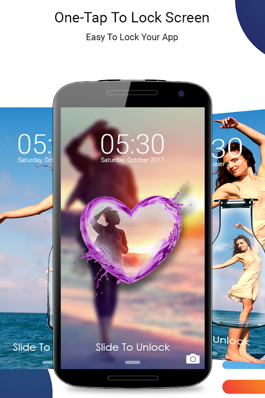 You can personalize your lock screen:, You can add your Like images into funny button you can change color and size of date/time texts; you can add your names or your idiom on your lock screen, and you also can change size and color of that text Your Device change photos of lock screen in app or photos in your collection.
