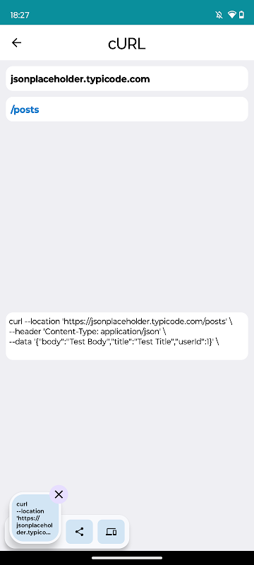 The logger allows you to view logs of requests and responses directly in your Android application. With a single click, you can copy the cURL command or the server response.