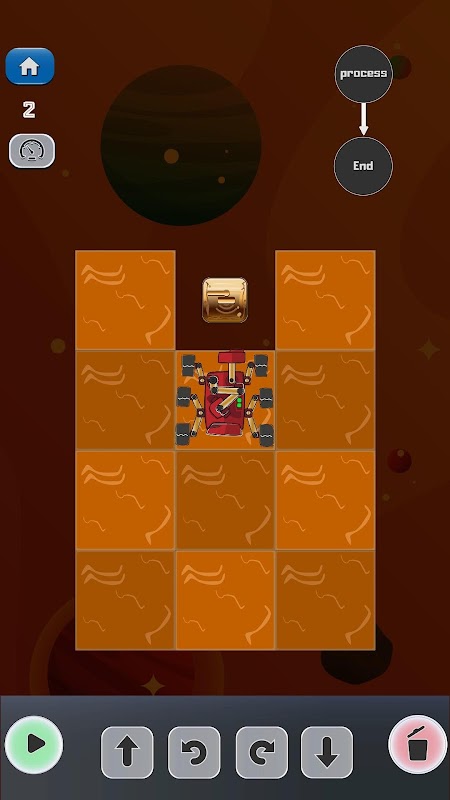 Aquí eres el programador jefe de las misiones de exploración en los plantas del sistema solar, donde debes programar los movimientos del robot explorardor Logic, para conseguir las estrellas y objetos en cada nivel.
