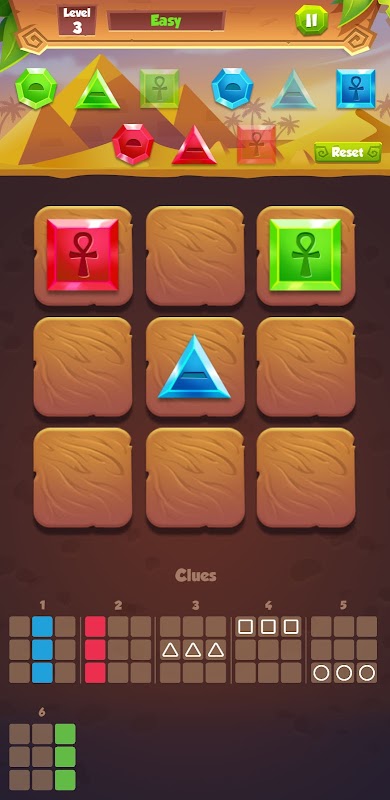 লজিক জেমস-এ আপনি রত্নটির সঠিক ফর্ম এবং রঙ সঠিক অবস্থানে রেখে প্রাচীন রত্ন লজিক পাজলগুলি সমাধান করার চেষ্টা করছেন। ধাঁধাগুলি সুডোকু-এর মতোই, কিন্তু লজিক জেমস-এ সংখ্যার পরিবর্তে, আপনি রত্নগুলির রঙ এবং আকৃতি নিয়ে কাজ করছেন৷