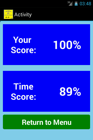 The Testing module in the app assesses the users performance in the areas of accuracy and time taken to complete 10 exercises.
