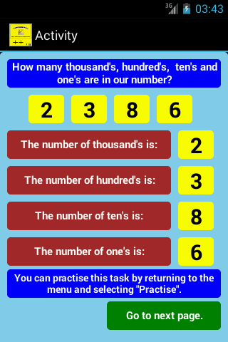 The practise sessions in Long Addition are randomly generated however they are generated within strict parameters to ensure the sessions remain within the users capabilities. The "practise" sessions will continue to provide an unlimited number of exercises until the user chooses to return to the menu.