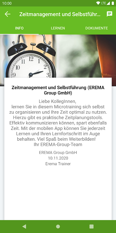 Erema nutzt für den digitalen Wissenstransfer die Methode des Microtrainings. Dabei wird die Essenz verschiedenster Wissensinhalte kompakt aufbereitet und durch kurze und aktive Lernschritte vertieft. Beim klassischen Lernen kommt dafür ein Algorithmus zur Anwendung. Die Fragen sind in zufälliger Reihenfolge zu bearbeiten. Wird eine Frage falsch beantwortet, kommt sie später noch einmal – solange, bis sie in der Lerneinheit dreimal in Folge richtig beantwortet wird.