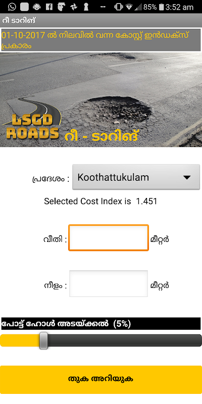 প্রদত্ত প্রস্থ এবং রাস্তার দৈর্ঘ্যের জন্য মোট পরিমাণ এবং উপকরণ গণনা করতে