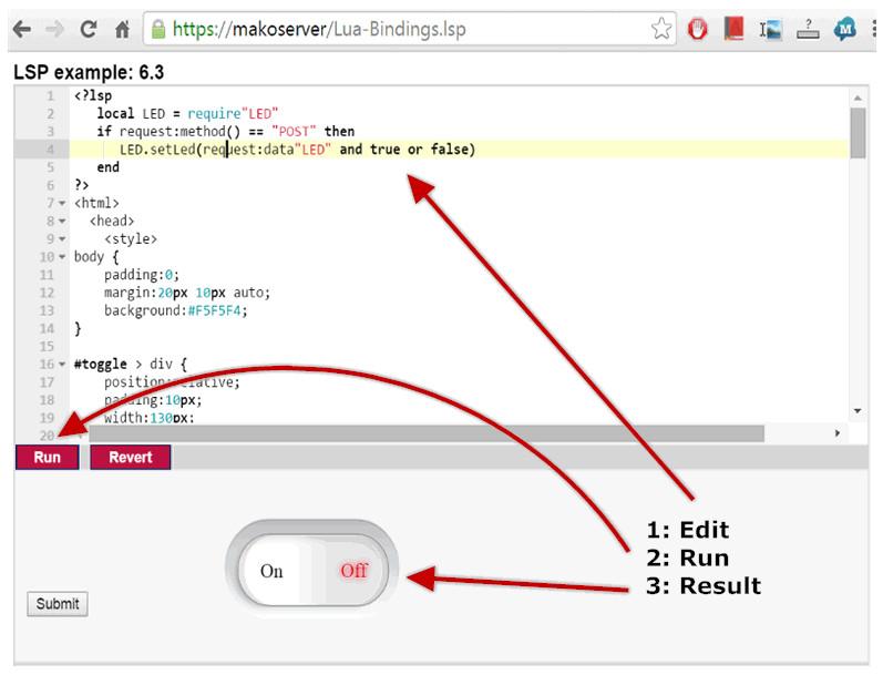 The Lua web tutorials are powered by the Mako Server, a compact application and web server. See the Mako Server home page for details: