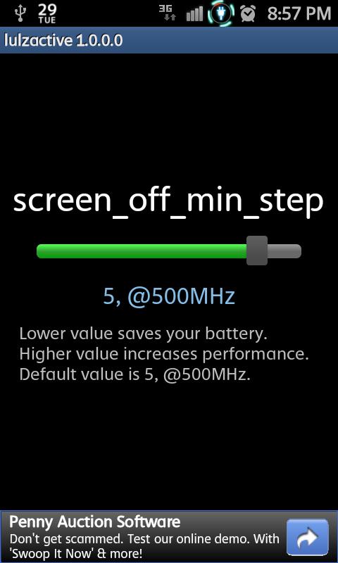 Needs a custom kernel that has "lulzactive" cpu governor.