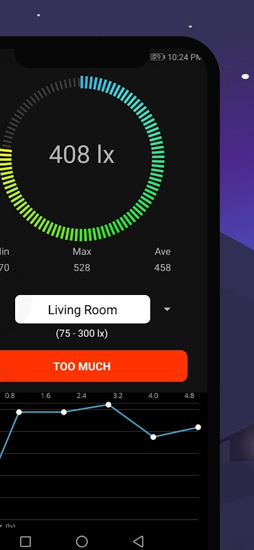 3. পরিমাপের যথার্থতা আপনার ডিভাইস সেন্সরের যথার্থতার উপর নির্ভর করে। এটি বাস্তব আলো থেকে এবং বিভিন্ন ডিভাইসের মধ্যে পৃথক হতে পারে।