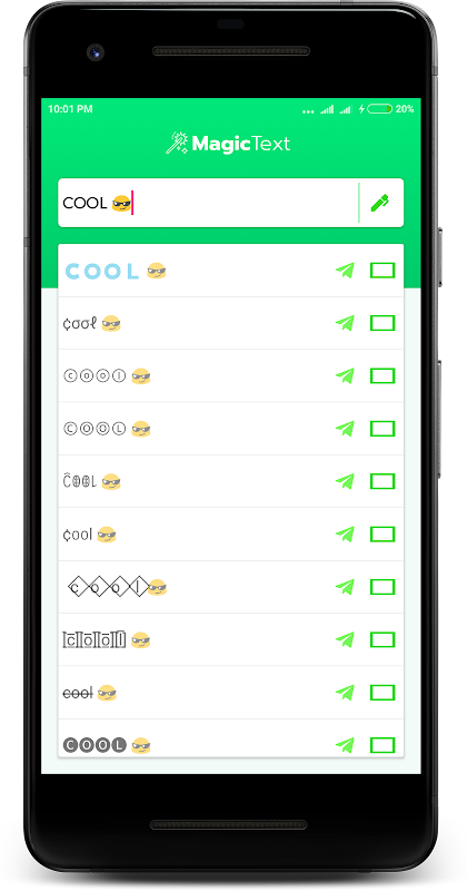 Create stylish text with Magic Text , share it with friends through whats app, facebook etc and impress them!!