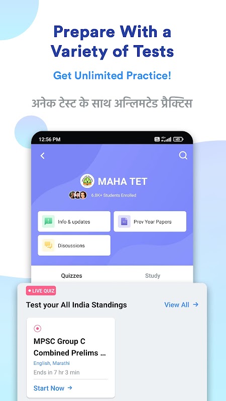 2+ কোটিরও বেশি শিক্ষার্থীর একটি ক্রমবর্ধমান সম্প্রদায়ের সাথে, আমরা এখন আমাদের শিক্ষার্থীদের এই পরীক্ষার জন্য স্থির মনোযোগ দিয়ে সাহায্য করতে এখানে এসেছি। শিক্ষার্থীরা এই MAHA TET অ্যাপটি ব্যবহার করতে পারে এবং তাদের পকেটে এই সামান্য সুবিধা নিয়ে ক্রমবর্ধমান প্রতিযোগিতায় এগিয়ে যেতে পারে।