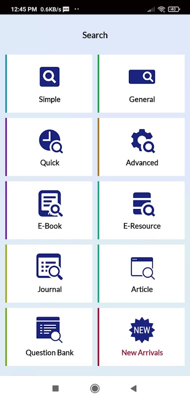 লেখক, শিরোনাম, প্রকাশক, বিষয়, কীওয়ার্ড, কল নম্বর, আইএসবিএন নম্বর, অ্যাক্সেস ব্যবহার করে - উপরে দেওয়া বিভিন্ন ধরণের অনুসন্ধান সুবিধা/মেনুতে লাইব্রেরি ক্যাটালগ অনুসন্ধান করতে