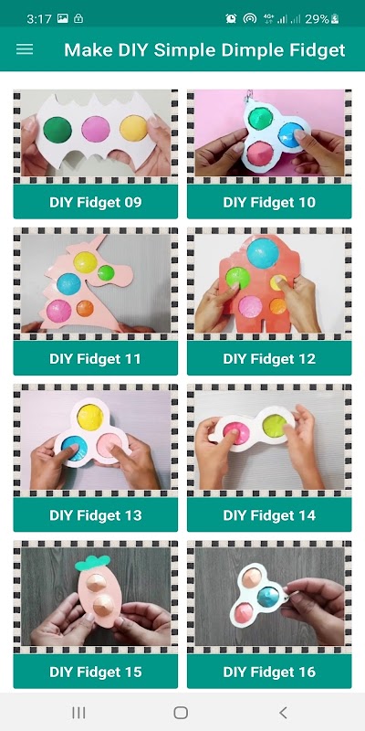 This app "Make DIY Simple Dimple Fidget" contain some instructions of learn to make Do It Yourself (DIY) Fidget toys at home. Turn on that creative brain and try these tutorials for DIY simple dimple fidget toys! These tutorials include items you can make yourself, or super simple, budget-friendly items you can pick up at grocery store.