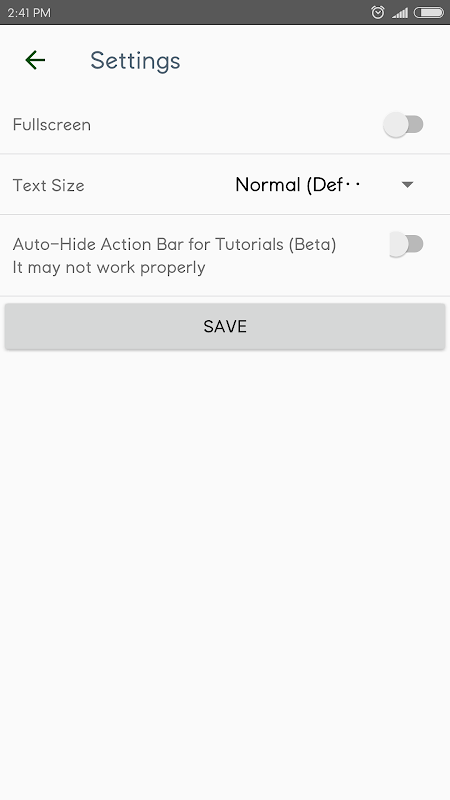 ✔ সেটিংস - টেক্সট সাইজ, ফুল স্ক্রীণ মোড, অটো লুকান অ্যাকশন দণ্ডে (বিটা)