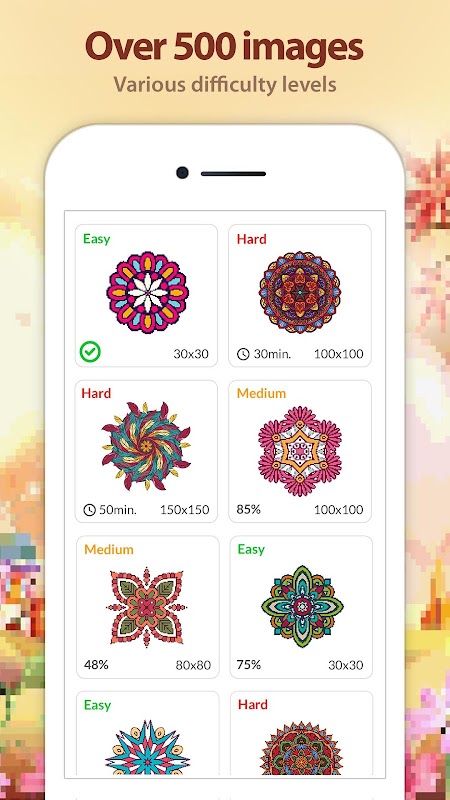 আপনি ধ্বংস এবং মজা আছে সাহায্য করতে পিক্সেল শিল্প শৈলী Mandala রঙ বই পান।